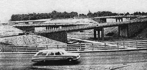 The Clearview Expressway (I-295), as shown prior to its 1960 completion, at the interchange with the Long Island Expressway (I-495) in Bayside. In the foreground is the north service road of the LIE, known locally as the Horace Harding Expressway. (Photo by Triborough Bridge and Tunnel Authority.)